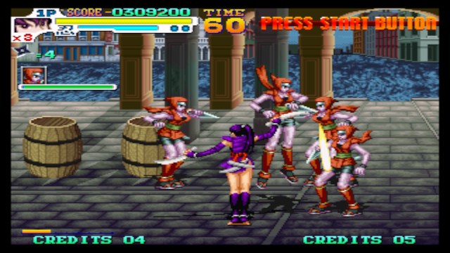If you’ve played games like Sengoku 3 in the arcade, you’ll know how difficult they can be, and that’s no exception here. It’s easy to get overwhelmed, and I frequently lose lives to armies of enemies. Still, the difficulty comes with the territory and the titles’ arcade roots. If you’re up for a challenge, Sengoku 3 is superb and encourages future playthroughs with unlockable characters.