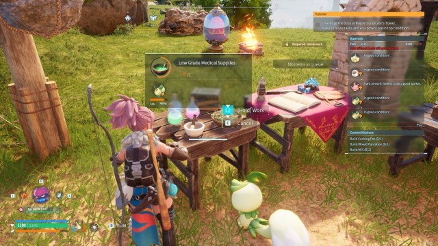 Once you have one of these Pals, make sure they’re assigned to your base through the Palbox. If they don’t seem to be interested in working at the Medicine Workbench, pick them up with the “F” key and throw them onto or near it. They should get the hint by then to start crafting whatever you’ve set up for them.