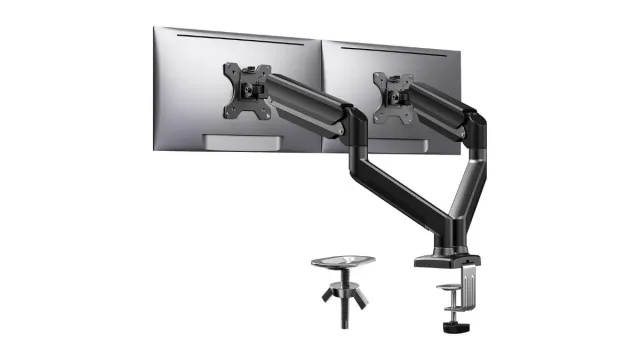 When I leveled up to monitor stands, I questioned how I lived without them. This ErGear dual monitor stand is extremely dependable and flexible. You can achieve any dual floating monitor look you want, including turning one or both screens 90 degrees. Free up more desk space with the ErGear dual monitor stand.