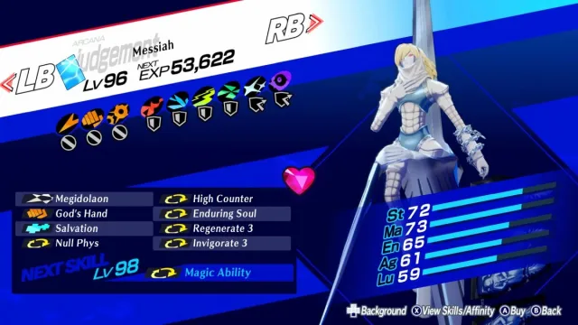 Helel is a part of the Star Arcana and is available from level 88. They have incredibly high stats all around, but it works best with Light and Almighty damage. Helel isn’t just a fighter, but a support as well. They can fully restore the party’s HP while curing them, and Life Aid allows them to recover some of their max HP and SP post-battle.