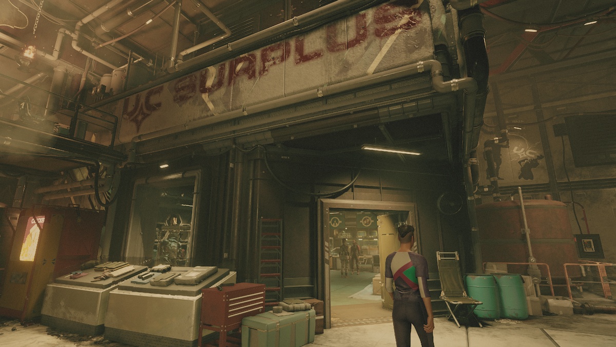 If you head into The Well, which is accessible through elevators in New Atlantis, you’ll find some unique underground shops. I quite liked the clothing in UC Surplus, it’s both stylish and functional looking. Their apparel is a lot more limited, but if you don’t mind stealing, you can take some of the clothes, spacesuits, and helmets right off the shelves.