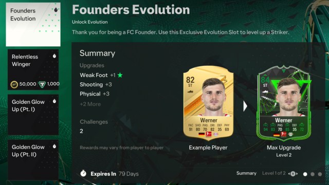 Beto is a fantastic cheaper option for this Founders Evolution in EA Sports FC 24. You can get him on the market for essentially discard price, and his base card is pretty great on its own. But if you level him up with the Founders Evolution, you can get a fantastic card with 89 pace, 82 shooting, 87 physical and 78 dribbling. Upgrading his weak foot to a four star is also incredibly helpful.