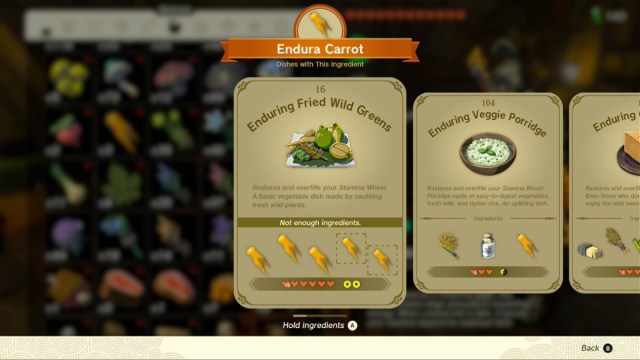 Although elixirs help in a pinch, I find that I prefer making food items to get Link where he needs to go. There are some great contenders, but one clear winner. The best stamina recipe combines five Endura Carrots.