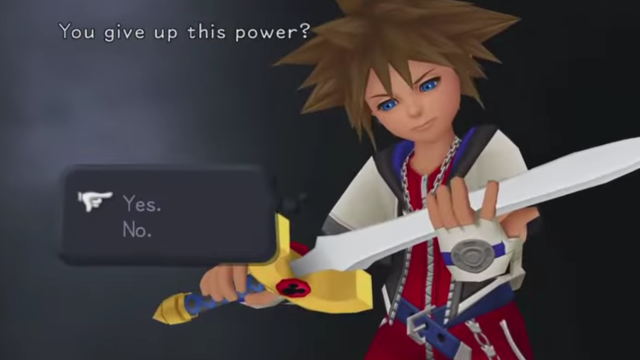 I recommend you don’t sacrifice the Rod since AP is very valuable and allows you to equip the powerful defensive abilities the Shield provides to you. Choosing the Shield and sacrificing the Sword gives you a solid start in Kingdom Hearts and is the best choice in the game.
