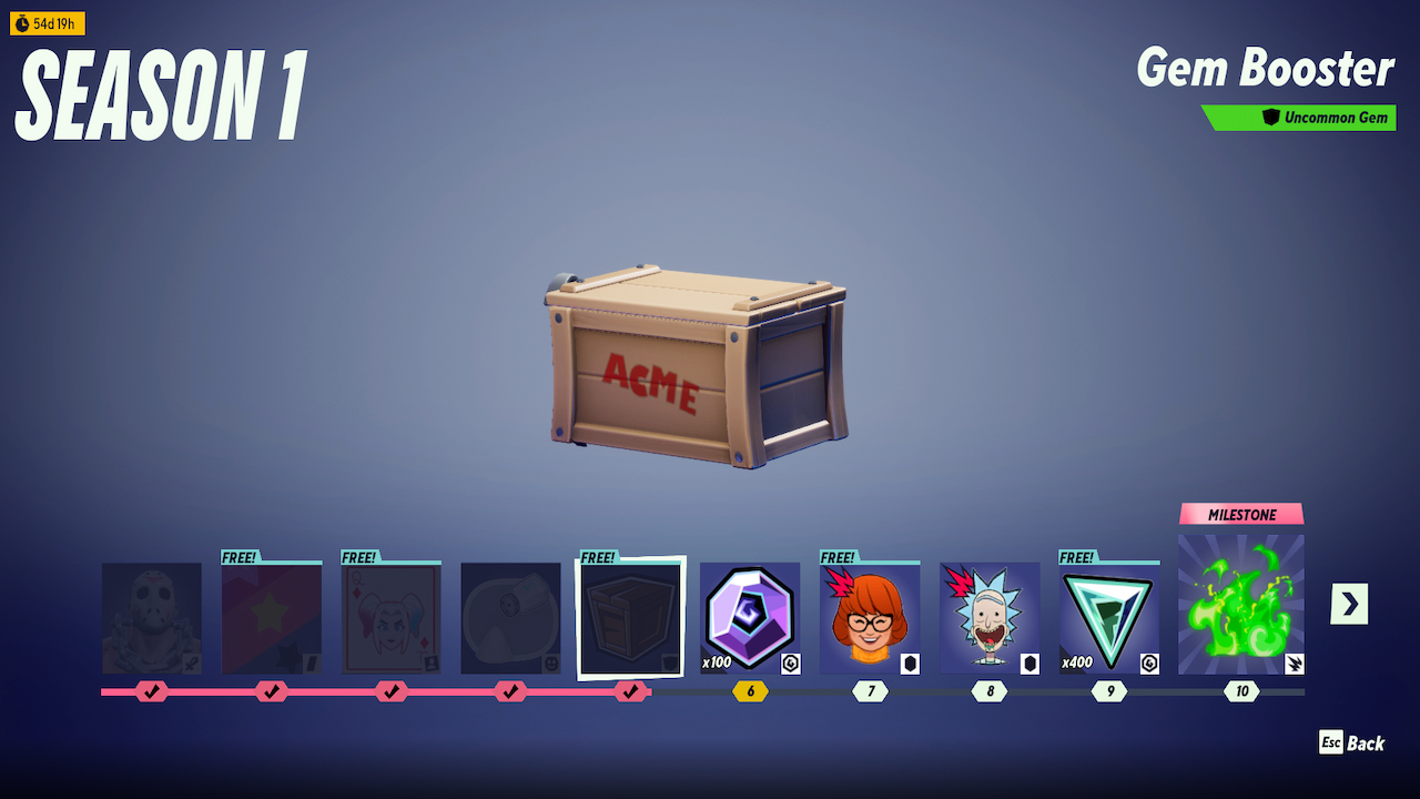 You can also earn Gems and Gem XP from ACME Gem Boosters. These can be pretty generous and can be earned by completing Daily Missions and from the Battle Pass.