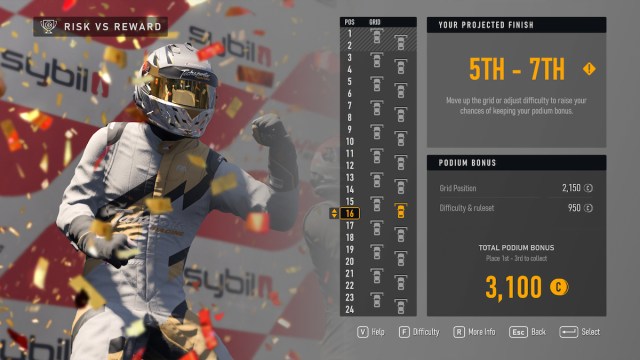 You can combine this method with starting in a lower position. If you play on a harder difficulty start near last place, and win, you could get a heavy amount of credits at once. This may be challenging at the start, but as you get better cars with better upgrades, coming in the top five doesn’t seem that hard anymore. The key would be consistency here since you need to keep trying. The difficulty gap between normal and hard is quite a jump, to combat this and make the transition fluid, have a car that can keep up with the demands.