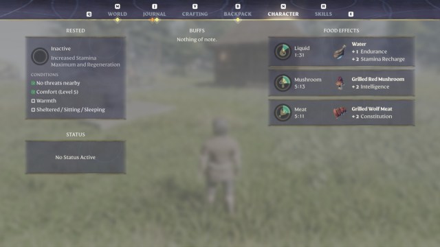 Not all food items will heal you in Enshrouded. Instead, consumables activate food effects that give you buffs over time. Drinking water, for example, gives you a boost to Endurance and your Stamina Recharge rate. You can have three food effects active at once as long as you eat different food types. You can’t have two meat buffs active at the same time, for example. Some food items will give you a Health Regeneration effect, but not all of them.