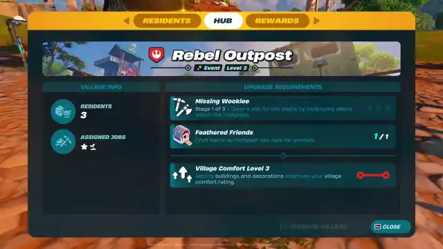 Now that you are starting to level up your Rebel Base in LEGO Fortnite, other than creating certain buildings and defeating Stormtroopers, leveling up your Village will require that you provide a decent experience to your Villagers. This is where Village Comfort enters the equation. Now, you might think you will need to become quite the craftsman and build an extremely beautiful and convoluted village that can be displayed in the museum, but that’s not the case.