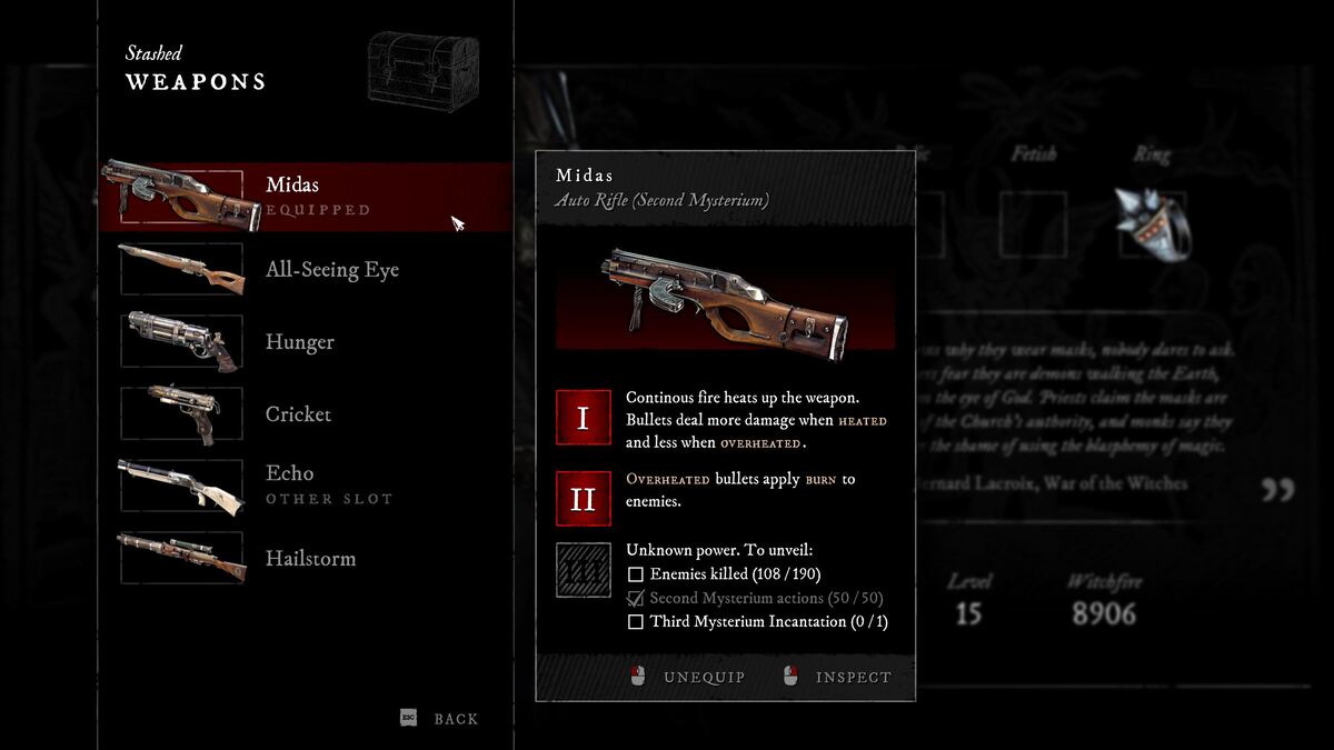 In my opinion, Midas, the mid-ranged Assault Rifle, is the best weapon in Witchfire. Midas has the best range, best rate of fire, best magazine size, and deals a lot of great damage. As you level it up, its heated and overheated features make Midas even better. It’s the most reliable and effective weapon in Witchfire.