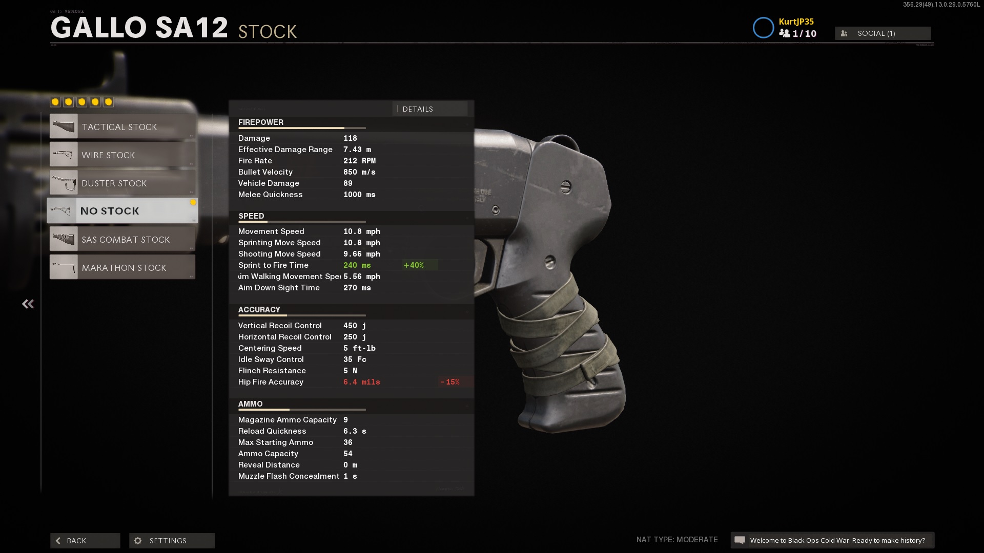 However, the No Stock attachment is extremely important as the 38% decrease it provides for the SA12’s sprint-to-fire time is far too good to ignore. It’s worth noting that the 40% decrease displayed in-game is slightly off. Also, the SA12’s actual sprint-to-fire time is far shorter than the 400 ms that is listed in-game. Instead, you can expect a default sprint-to-fire time of 267 ms, with that being cut down to just 165 ms via this build. With that kind of handling, you’ll be able to out-gun every other weapon in Black Ops Cold War within that optimal nine-meter range.