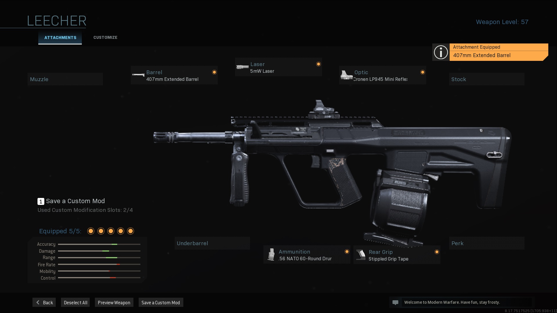 It really feels like the AUG came out of nowhere. I completed the mastery challenge on this SMG early into Modern Warfare‘s life. At the time, hardly anyone used it and would usually opt for the MP5 or MP7 instead. But a few nerfs and buffs later and it’s now a seriously competitive gun benefiting from having tons of useful attachments. That is to say that while most submachine guns are stuck being what they are, the AUG can be kitted into anything from a point blank run-and-gun weapon all the way up to a beefy LMG.