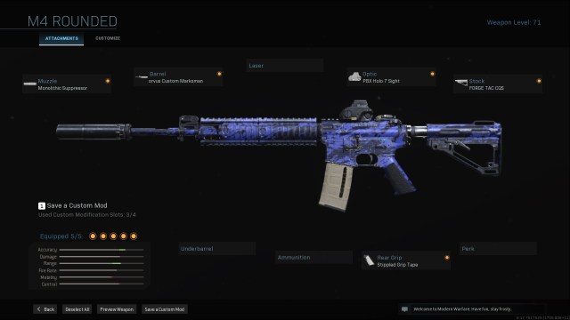 What’s bizarre about the M4A1 is that it’s supposed to be a jack-of-all-trades assault rifle, and yet it excels at just about everything. It’s got a great fire rate at 833 rounds-per-minute (RPM), impressive max damage range at up to 41m, and very forgiving recoil. All this adds up to create the easiest-to-use gun in Warzone. It might be outclassed at range by the likes of the Oden and PKM, but you are going to have a far easier time consistently hitting shots.