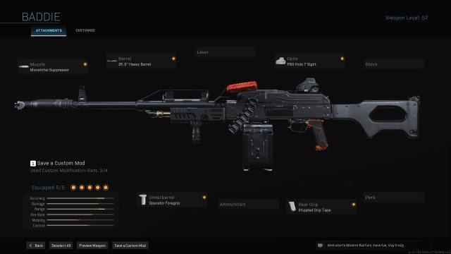 As far as I’m concerned, the PKM is the best gun in Warzone. If you attach both the Monolithic Suppressor and 25.9″ Heavy Barrel, it won’t suffer from any damage falloff until 50m. At that range, it will three-shot anyone without armor, and seven-shot anyone with full armor. This results in a very competitive time to kill that’s comparable to the best assault rifles, while also out-ranging most of them.