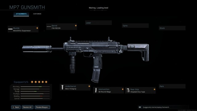 The fifth and final attachment can be tweaked to suit personal preference. The Stippled Grip Tape is a solid option as it improves both aim down sights speed and sprint to fire speed. Alternatively, the Tac Laser offers the best improvement to aim down sights speed of any attachment on the MP7. Finally, some players opt for the No Stock attachment, as it significantly improves mobility. Just be aware that it also gives a notable increase to vertical recoil, which in turn makes this Warzone MP7 build less viable at long range.