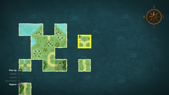 Carto’s signature tile mechanic makes up the backbone of the game’s multitude of puzzles. Each chapter, usually representing an island, is broken up into predominantly square tiles. Carto can open her grid-based map, where she can manipulate every available map tile, rotating and moving them. Tiles can be connected provided the now-adjacent tiles have matching borders. Tiles with a forest on all sides will fit snuggling between other forest-sided tiles. Alternatively, tiles containing a path must continue another path started another tile, so on and so forth.