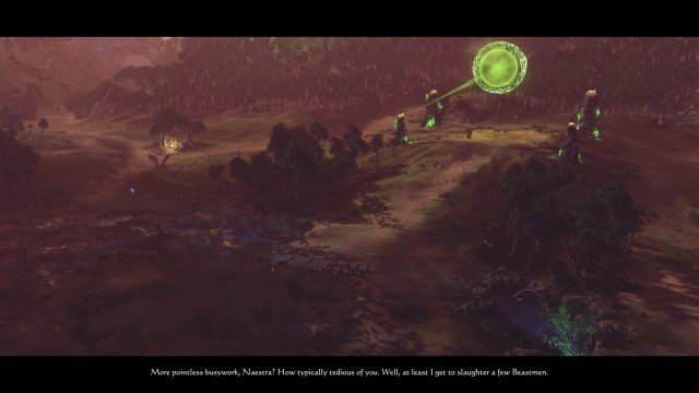 After clearing them out, more Beastmen reinforcements arrive. The good news is that they’ll appear one after the other (the first from the northeast and the second from the northwest).