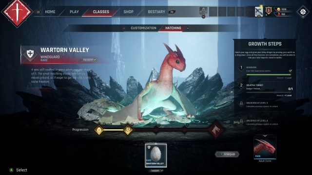 During the preview, I also got to check out some of the game’s other features. Century: Age of Ashes will release as a free-to-play game, with items such as cosmetics for your dragon and dragon rider as items you can purchase. Completing matches offers experience points, and the further you go along, the more items you unlock. I managed to secure a pretty gnarly-looking set of armor for my dragon. So, there are cosmetics you can earn naturally through play. There are a lot of items as well, ranging from capes to helmets, weapons, leggings, chest pieces, and dragon saddles. You can also raise your own dragon by hatching eggs. I got an egg shortly after my first match. It hatches after you get enough experience, and you help it grow by completing quests like dodging a fireball. And they’re so cute!