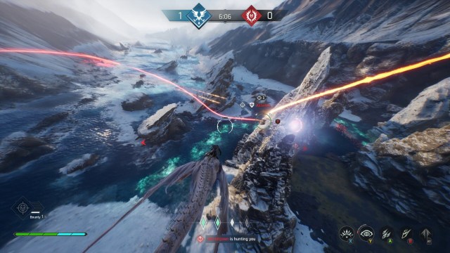 Spoils of War gave me a good idea of what a real, high-stakes game of Century is like. The three-on-three deathmatch was cathartic by comparison. Players on opposing sides would meet at a gold dragon, blasting fireballs and spitting flames. And while the mode was about hoarding gold, that didn’t stop things from getting sweaty. More than once I found my nearly broke self getting chased regardless. Though the controls are smooth, my piloting skills weren’t quite up to par, and I ended up smacking headlong into walls and pillars as I was being hunted. Still, it was enough of a, ahem, trial by fire that I eventually got the hang of this new environment and mode.