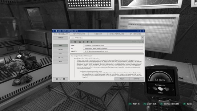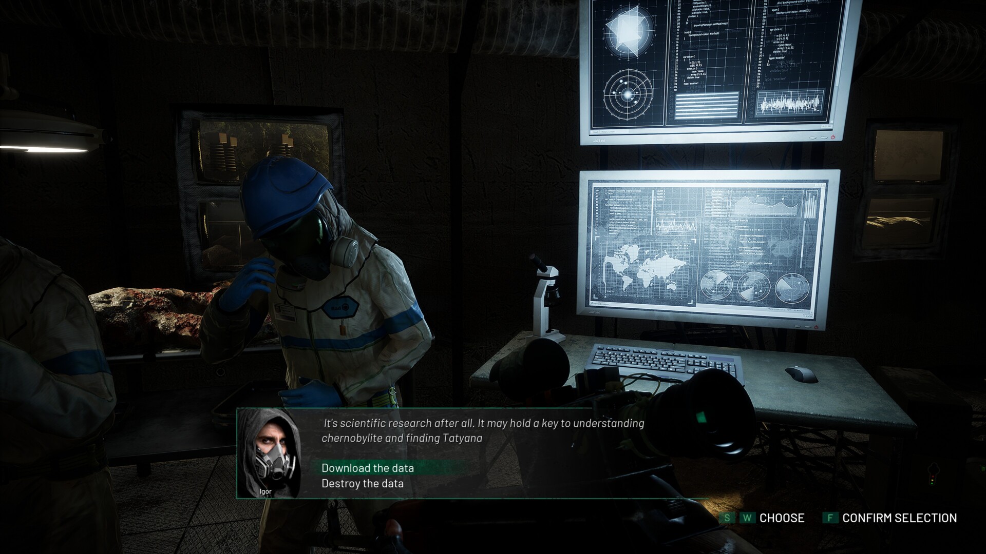 After gathering all the Black Stalker clues, you can start the VR simulation. You’ll learn that Semonov’s reckless ambitions caused him to experiment on the chernobylite’s effects on humans, with so many failures and deaths along the way. It seems that Kozlov, who’s still part of NAR, isn’t as guilty as it would seem (he’s the one admonishing Semonov).