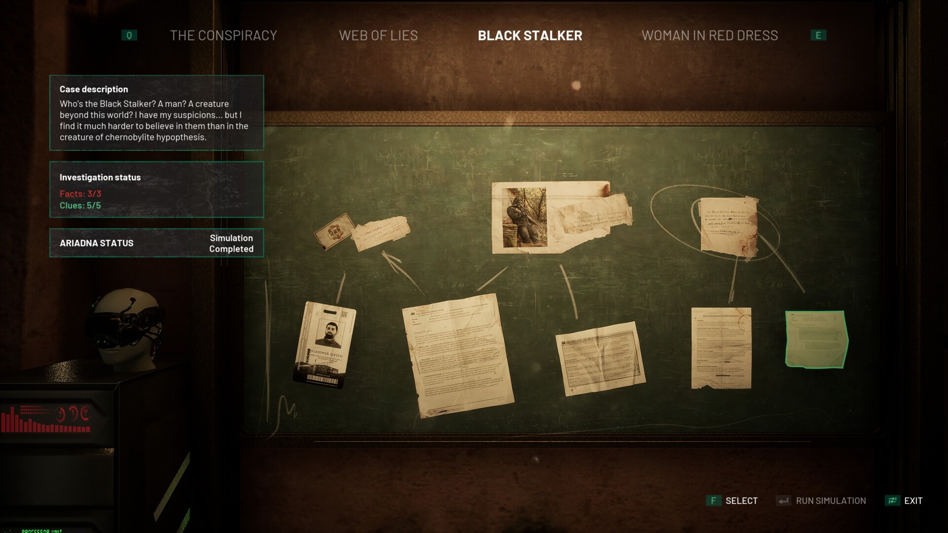 Note: The clues are listed based on their appearance on the Black Stalker investigation board of Chernobylite.