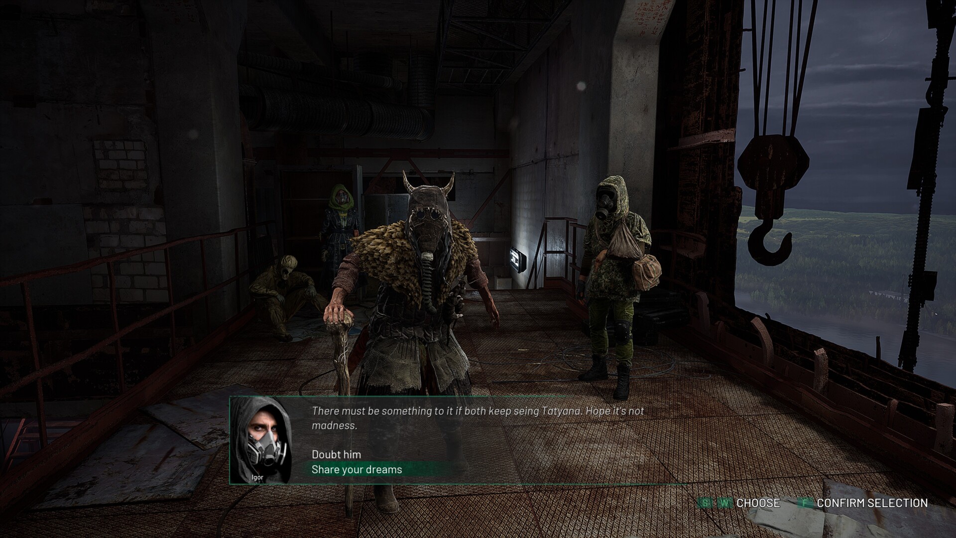 I encountered Tarakan early in Chernobylite‘s campaign, but he was very wary of intruders.