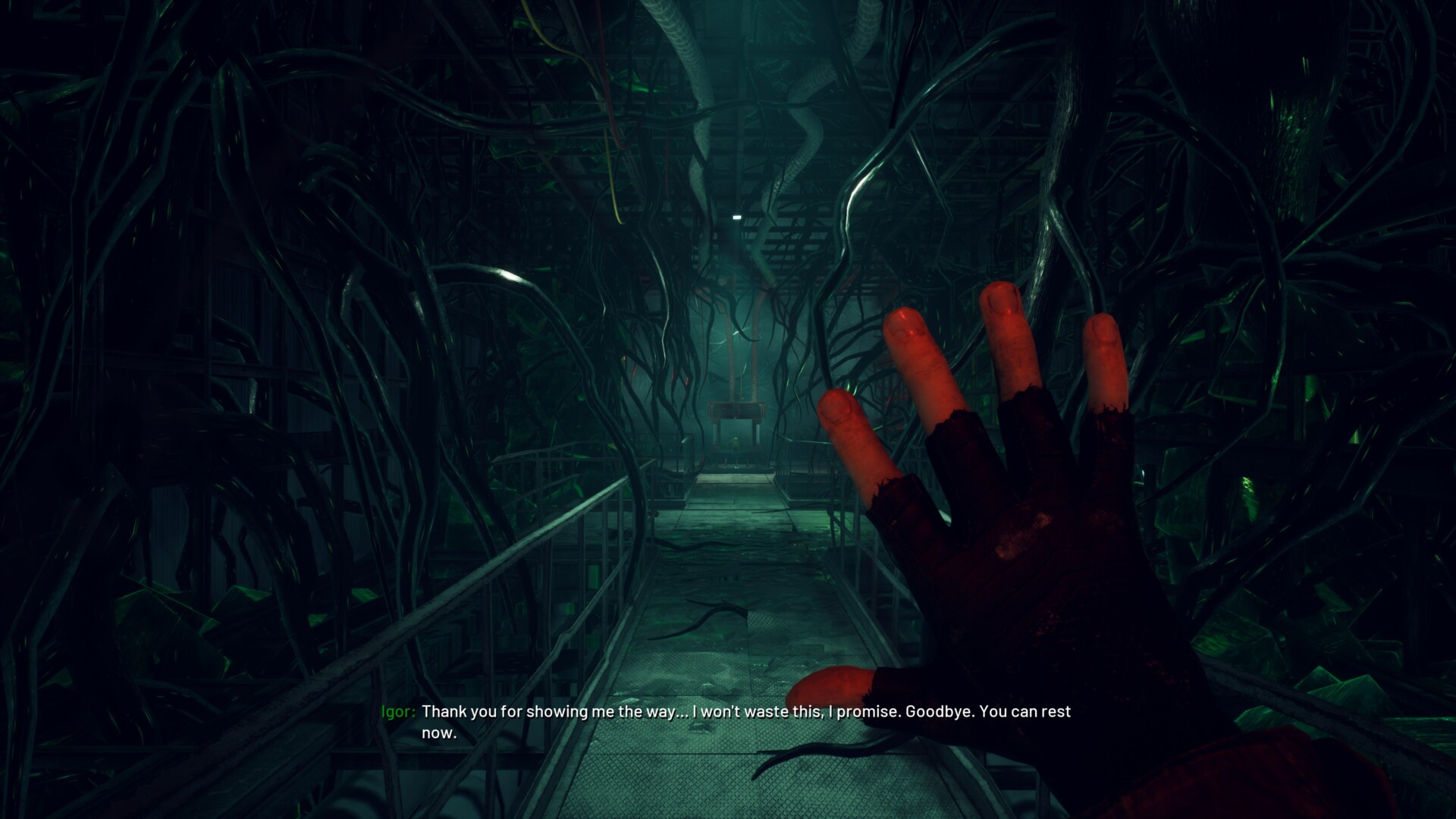 Although the real Igor is dying, he admits that you (his and Tatyana’s son) must end their suffering. Tatyana has been experimented on for long enough, and she can’t be the conduit for the chernobylite entity. If you choose this option, the portal will collapse and the building will soon follow. Look at your HUD and follow the marker. You’ll eventually reach Tatyana’s chamber where clone Igor says goodbye to his mother.