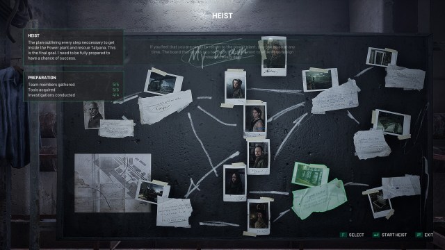 Chernobylite‘s Heist mission takes you back to the Chernobyl Nuclear Power Plant to save Tatyana. The Heist board tells you if you’ve met certain requirements prior to starting it. Since we’re discussing numerous facets, you can refer to the pages below for the parts that you need help with: