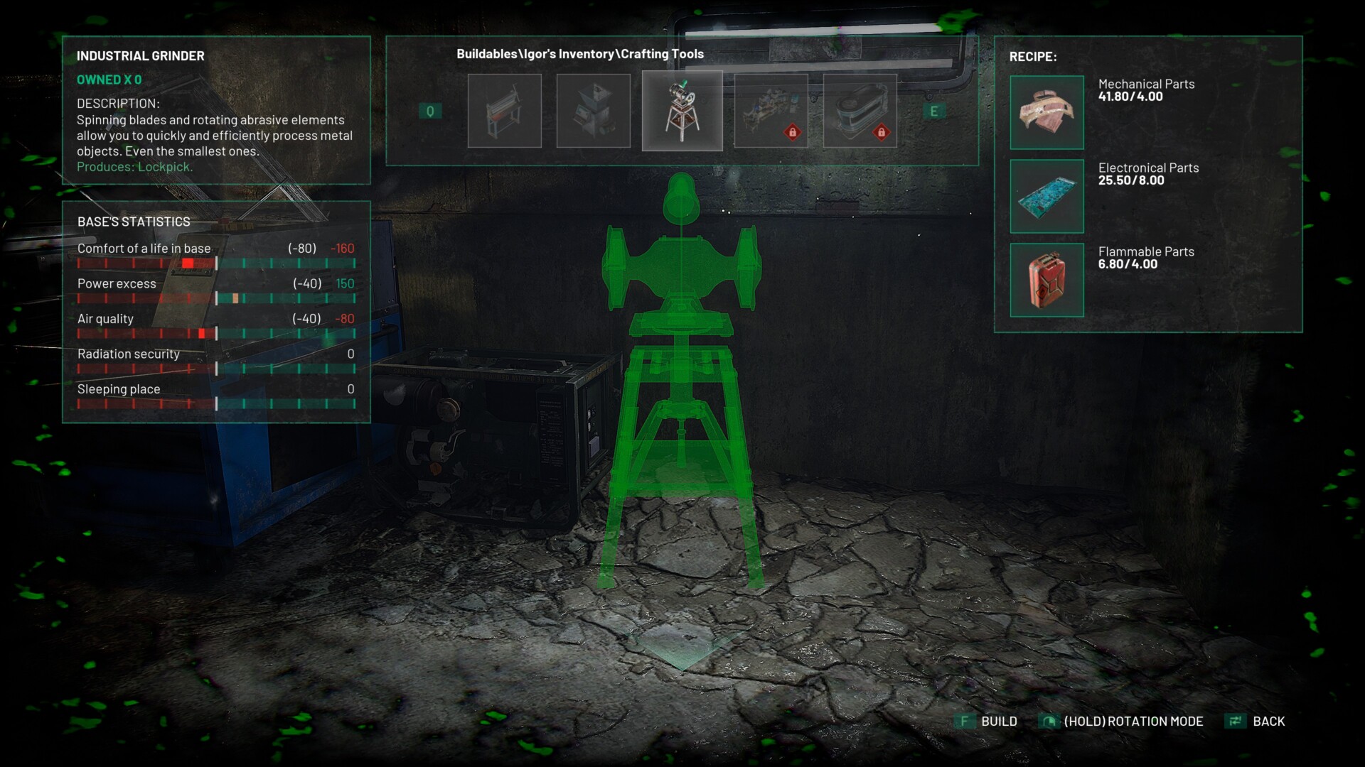 In general, you’ll be able to craft lockpicks in Chernobylite once you’ve constructed an Industrial Grinder in your base. It requires 4x mechanical parts, 8x electronics, and 4x flammable parts. Once you have it, you can churn out lockpicks at 2x mechanical parts and 1x chemicals per pop.