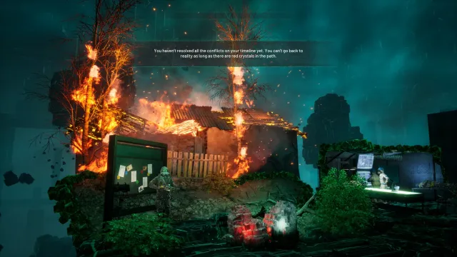Anyway, let’s say you’re happy with your decision. If the ominous-looking tree in the distance has a green glow, it means you can return to reality. Igor will simply wake up and a new world state will be active.