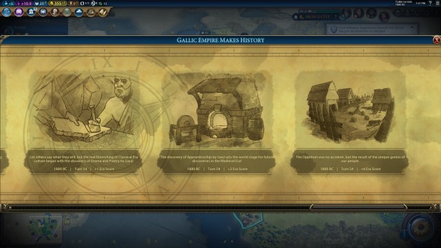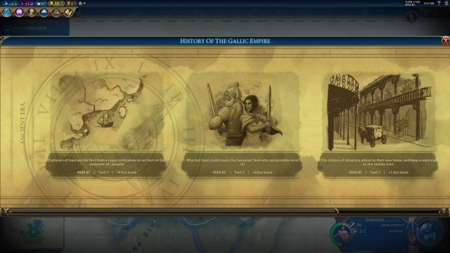 - It’s possible to get multiple era score increases as soon as you start your Civilization VI: New Frontier Pass deity game with Gaul (seen above). The Gaesatae already nets you +4 era score since it replaces the Warrior. Because the Gaesatae has higher production costs compared to the Warrior, you’ll want to spam it much later once Oppida are up and running.
