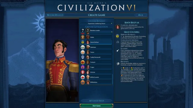 Civilization VI: New Frontier Pass includes the Maya and Gran Colombia Pack. The first DLC brings us Gran Colombia led by Simon Bolivar. Here’s our deity guide to help you out.