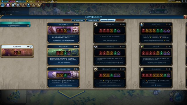 - Political Philosophy (Oligarchy government) – Units gain +4 combat strength.