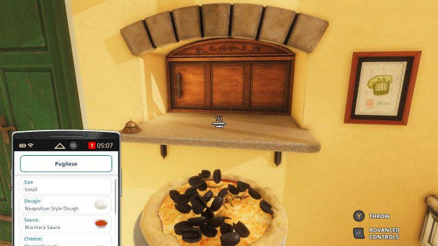 As this DLC focuses on pizza, preparation is the name of the game. You have to use your smartphone to pin recipes for dough and sauces and then make them. Dough is made with a large mixer that squeezes out balls of dough into a tray underneath the machine. Sauce, on the other hand, requires you to load a food processor with the specified ingredients and place a GN tray inside to collect the sauce itself. The main baking area has a rack for storing all the GN trays and it can be pulled into the prep area, which allows you to place ingredient trays without running back and forth between the two rooms.
