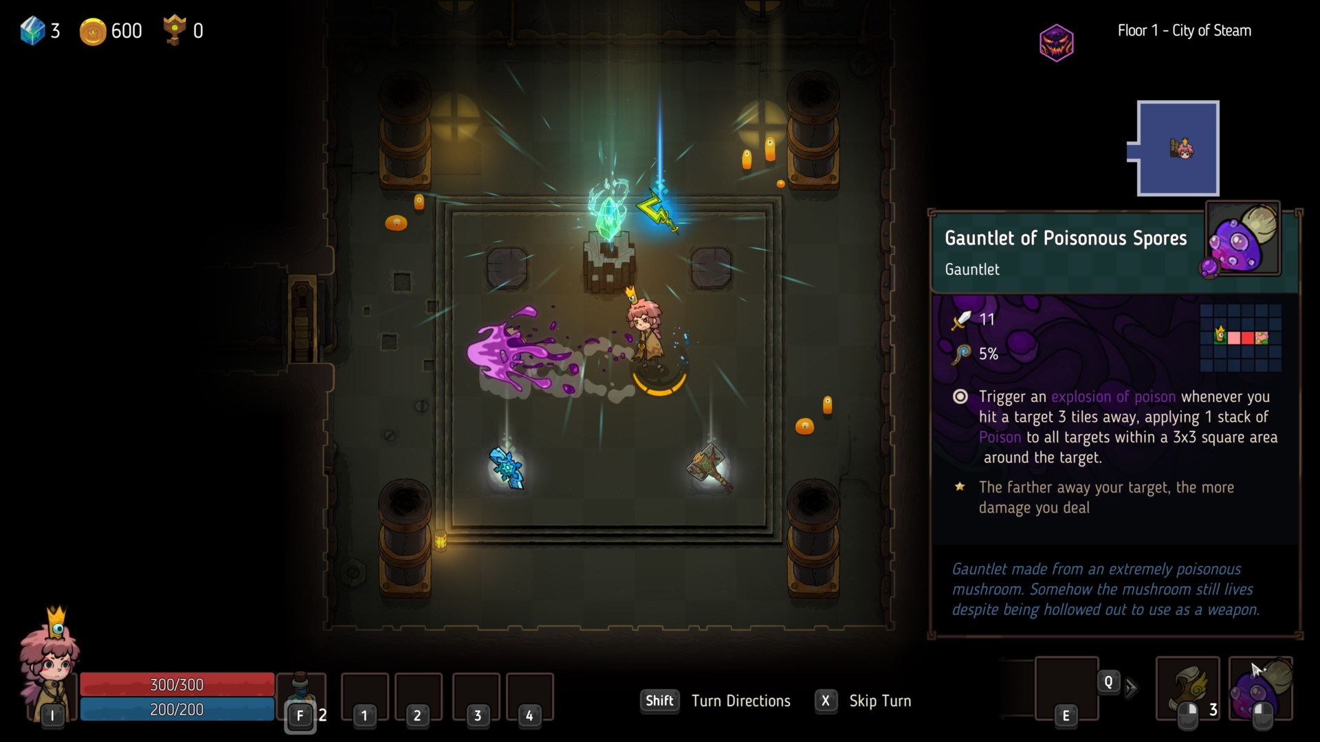 Funnily enough, gauntlets tend to be a ranged weapon in Crown Trick. This is because they’ll shoot out projectiles up to three tiles away.