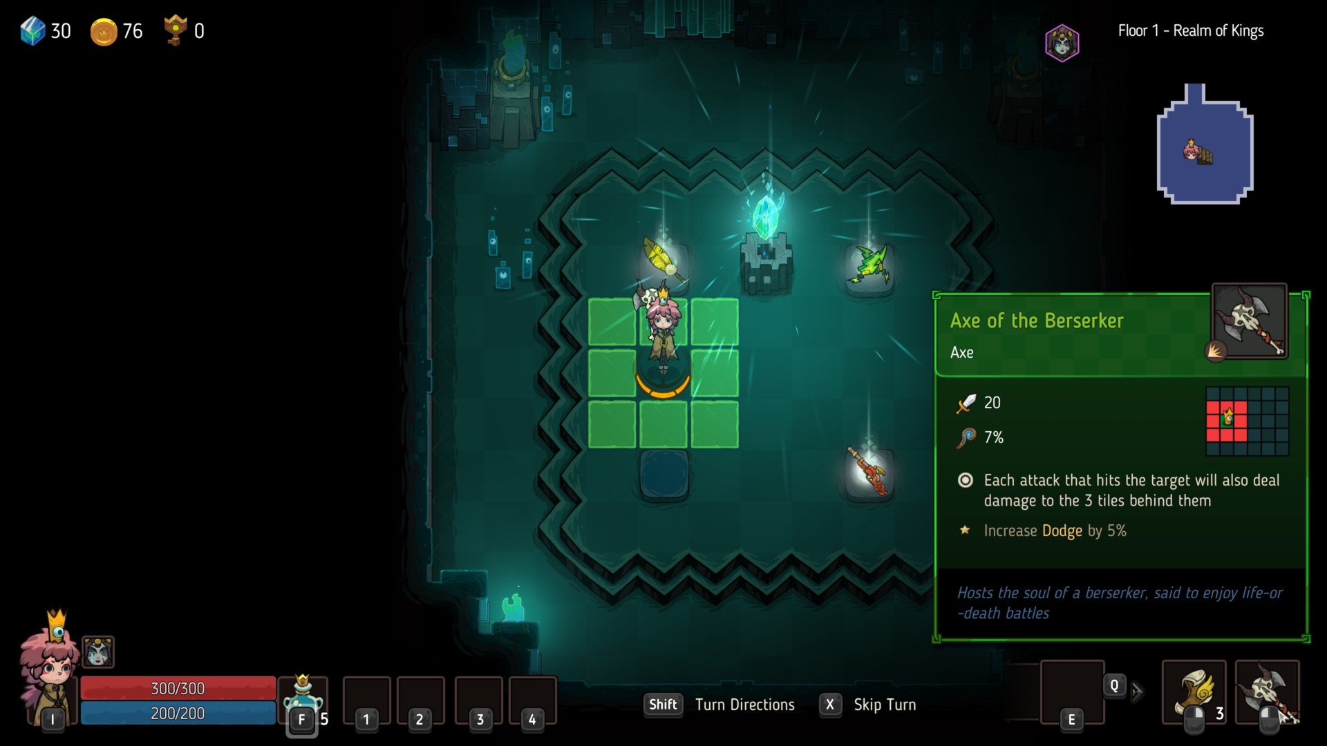 My absolute favorite weapon type in Crown Trick, however, is the axe. The axes you find in the game can hit every tile surrounding Elle.