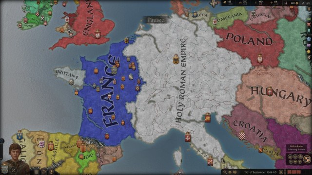In this Crusader Kings III guide, I’ve decided to take a tour of France by using King Philippe as an example. I feel that his realm allows you to check out various buildings — some of which are dependent on terrain — that can turn France into the big blue blob (BBB) that we’ll eventually come to fear.