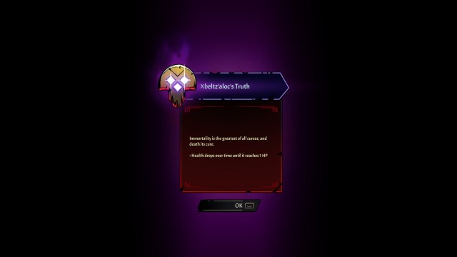 It’s called “Xbeltz’aloc’s Truth” and it’ll consistently deplete your health until you have only 1 HP remaining. Needless to say, this will be a race against time.