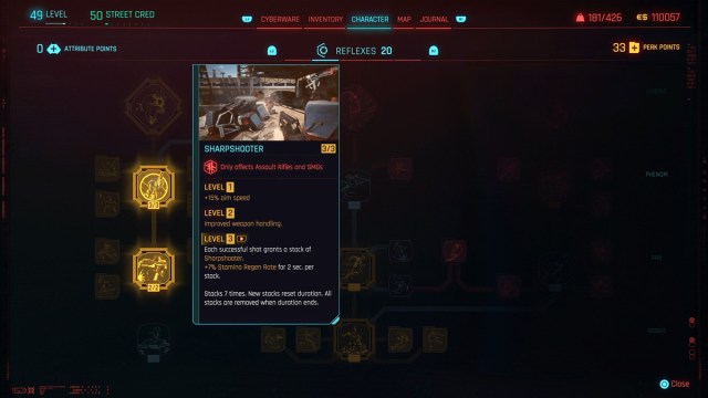 The perks on offer here for Assault Rifles in Cyberpunk 2077 are admittedly a little boring on the surface. But again, these weapons are already really good and it doesn’t take much to make them better. Focusing on these perks will make shooting these weapons much easier and you’ll be glad you invested the time in them.