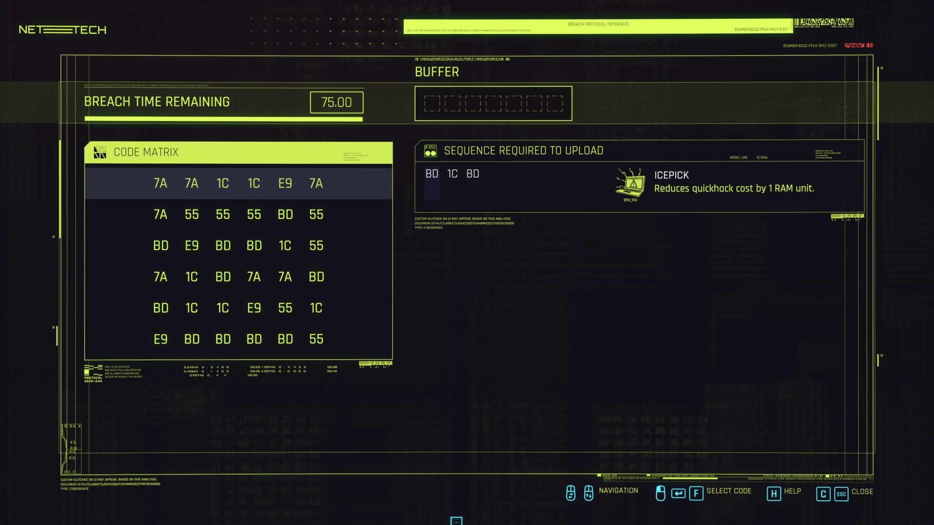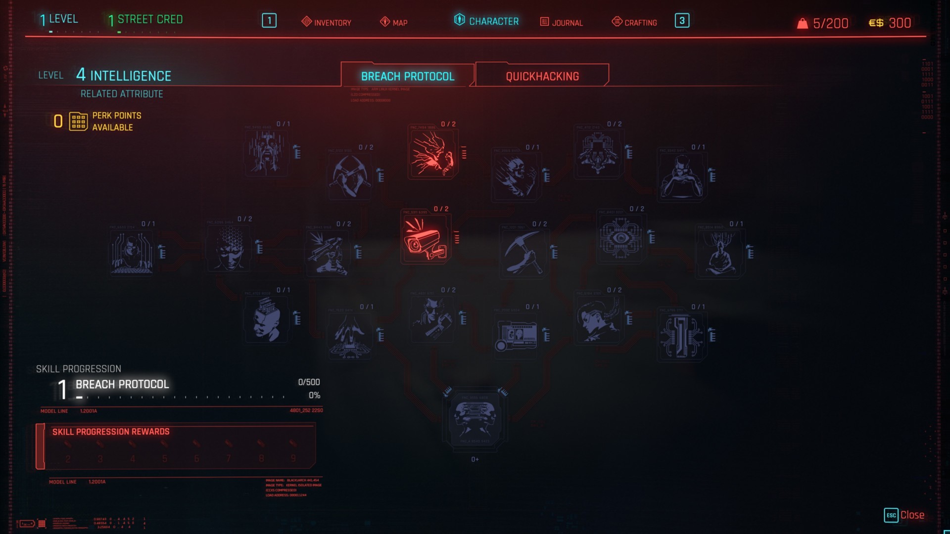 Breach Protocol awards an extra perk point at levels 2, 6, 10, 14, 16, and 18. Other level-ups increase the minigame’s timer and components acquired.