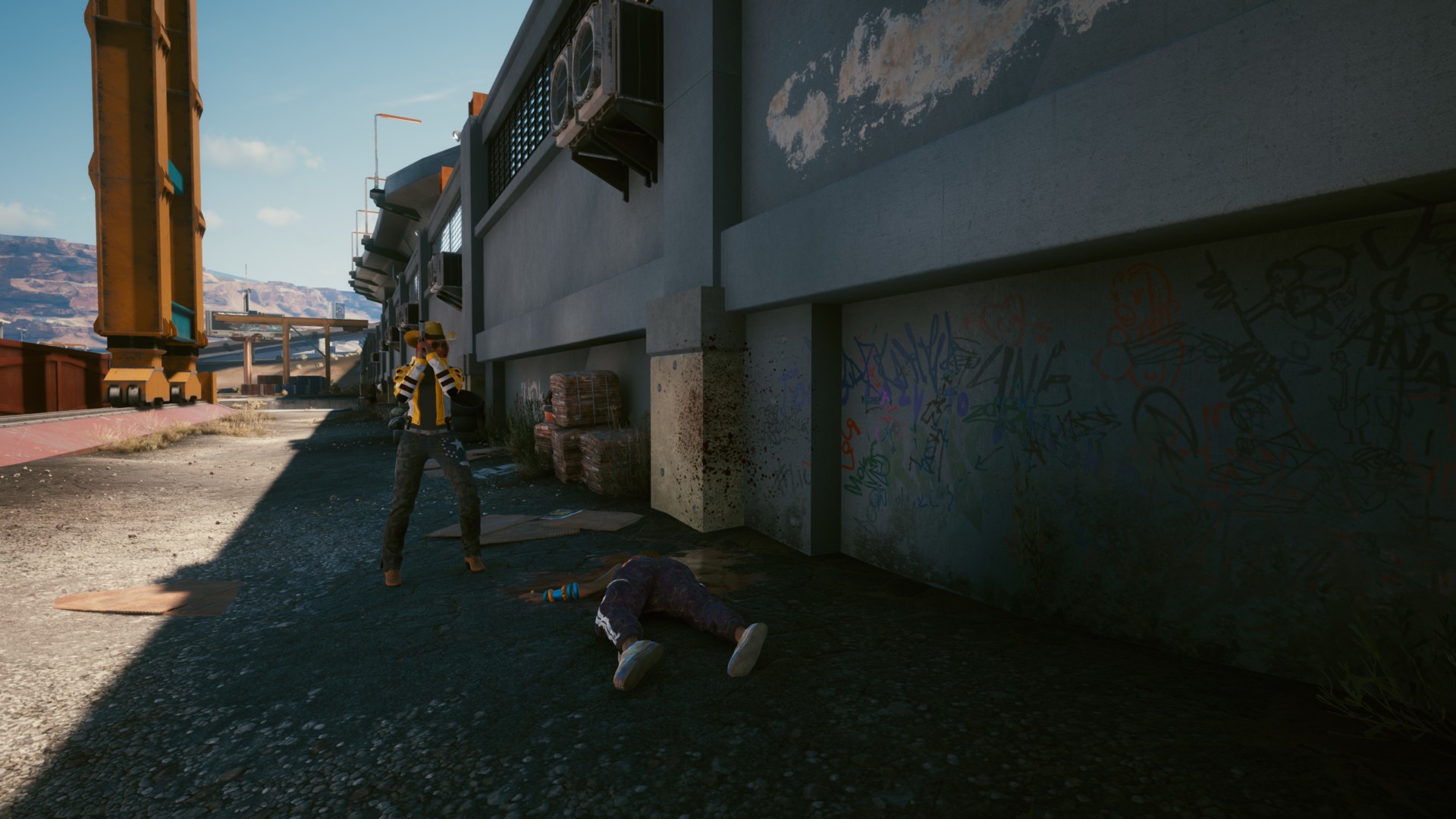Head towards the marked location to find a dead woman wearing a pink tank top and purple pants. You’ll know it’s the correct spot since there’s graffiti on the wall next to her.