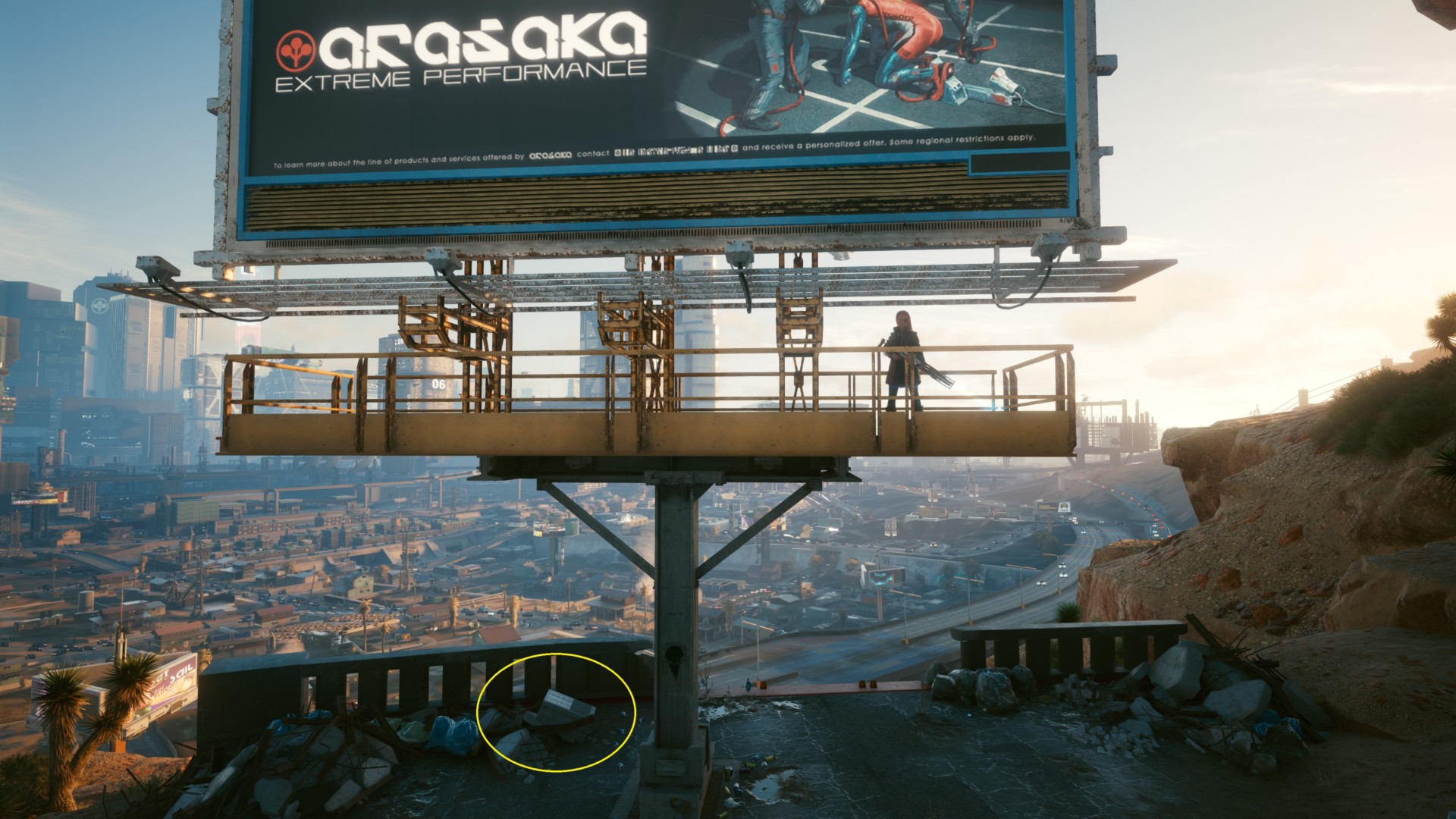 You’ll see an Arasaka billboard as your landmark. The crate below that has the item.