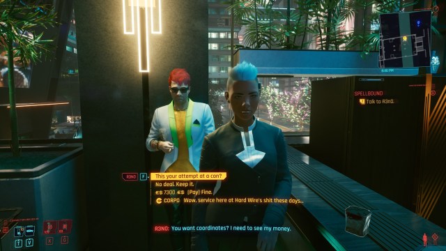 Anyway, return to Nix to finish the objective. If you have 12 Intelligence, you can goad him to pay you more for completing Cyberpunk 2077′s “Spellbound” sidequest.