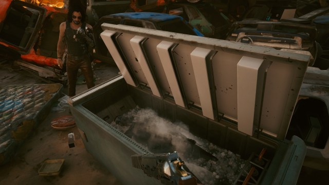Still, at any point in time after Cyberpunk 2077‘s first act, you can return to the landfill. Just follow the road that goes south from the Sunset Motel fast travel point.