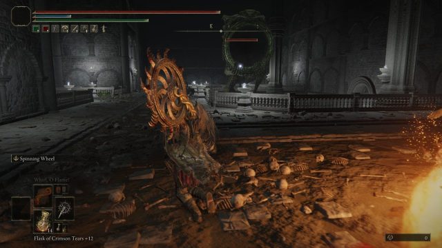 Exiting this lift will put you down a few sets of stairs and then face to face with the biggest Bigmouth Imp you have ever seen. It will blast you to bits if you don’t immediately start rolling. This is the final boss of the Darlight Catacombs in Shadow of The Erdtree.