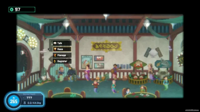 Once that’s complete, you’ll be able to start racing seahorses. Competing in seahorse races earns you Bei, a new currency usable in the Sea People Village. In the future, you can talk to Yumi by the front door to start racing. There are multiple options to choose from. You can either Race, Manage, or Register your seahorses.