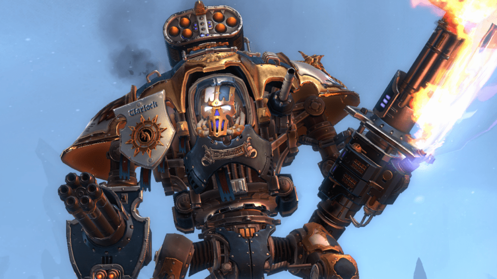 Back to the Elites; they also have passive, doctrine-like buffs. When world’s most serious man Gabriel Angelos is deployed, Space Marine Dreadnoughts get an additional shielding effect to their melee slam ability. Level Angelos up enough (Elites get post-match experience) and that ability can become an army-wide doctrine. It’s a reasonable system, though I do foresee some problems with unlocking passive buffs from more costly Elites who, by their nature, tend to see less time on the field.