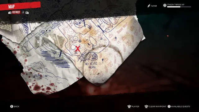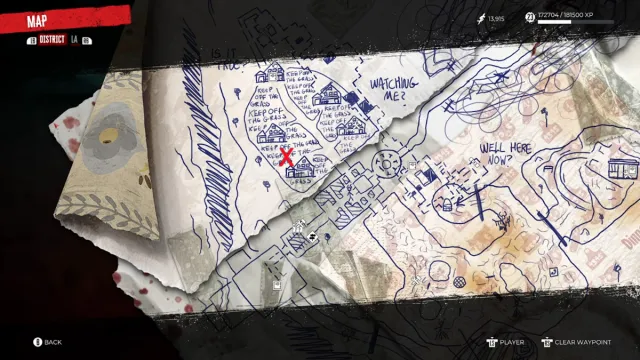 The next clue doesn’t come with a photo, unfortunately, but it’s also pretty straightforward. The key part of the clue is the phrase highlighted in red. Simply put, the solution is to head over to the second house on the right-hand side of the area. Head up to the attic where you’ll find a corpse and the next clue. This is where the hunt for the Dead Islands in Dead Island 2 gets a little trickier.