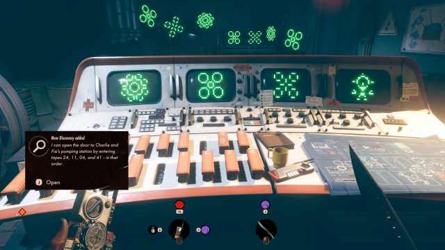 Next, go down the shaft to reach the pumping station. You’ll see a control room on the floor above you. There’s a lever that you can use to flood the area. If you killed either Charlie or Fia earlier in your Deathloop run/day cycle, then their partner won’t show up. But, if they’re both alive, they’ll be here.