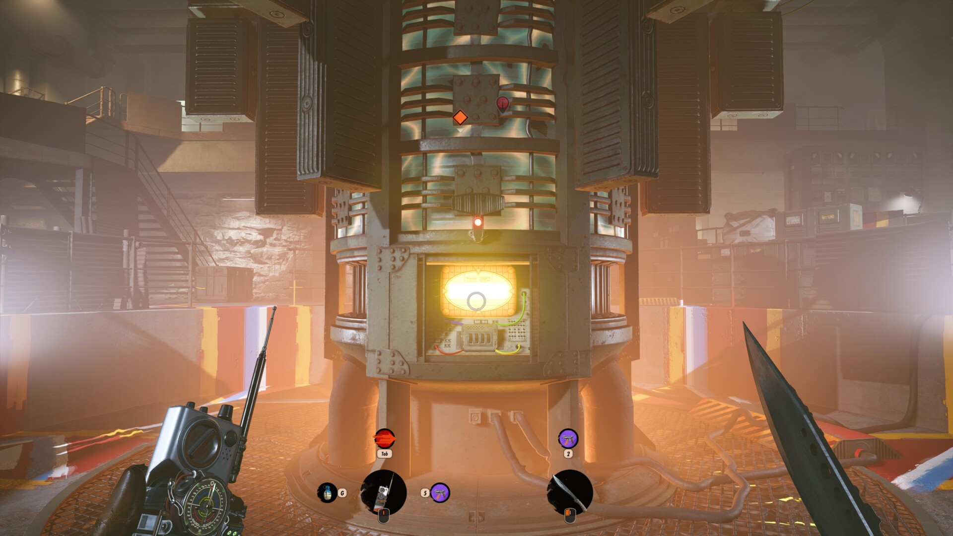 Next, stealthily make your way past the guards and cameras. Once you reach the research area with the reactor, check out the panel on its opposite side. You should be able to open it with your Hackamajig. Just cut the wires in the order shown in the schematics.