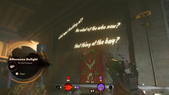 We’ll need to find and interact with four pictograms in Fia’s base in Deathloop. You might see several in the area, but most don’t actually count. Anyway, there are clues based on the wording if you check the tooltips. Here are the ones that I found: